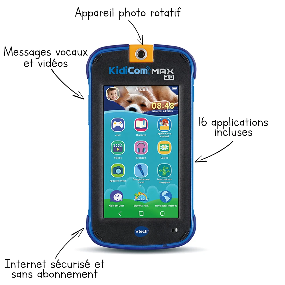 Au-délà d’un portable, KidiCom Max 3.0 propose aussi d’accéder à des jeux ludiques et éducatifs, à de la musique, des vidéos et bien plus encore.