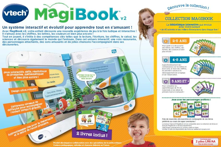 - Un lecteur interactif MagiBook (compatible avec toute la collection de livres en français MagiBook)