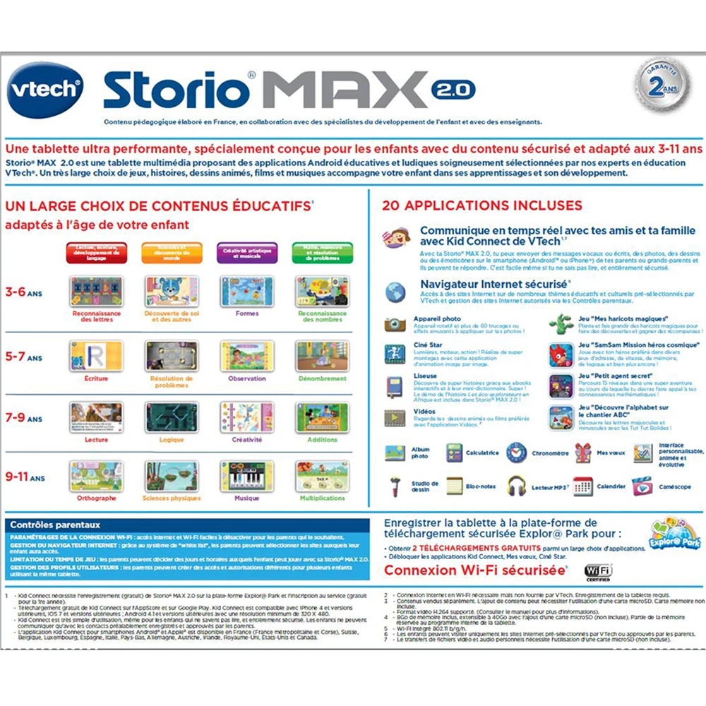 Storio® MAX 2.0 est une tablette enfant multimédia proposant des applications Android éducatives et ludiques soigneusement sélectionnées par nos experts en éducation VTech®.
