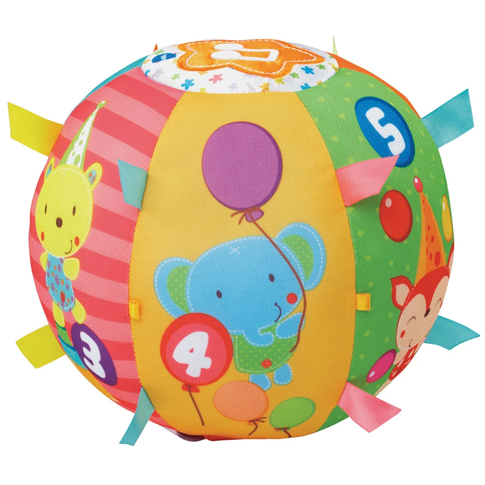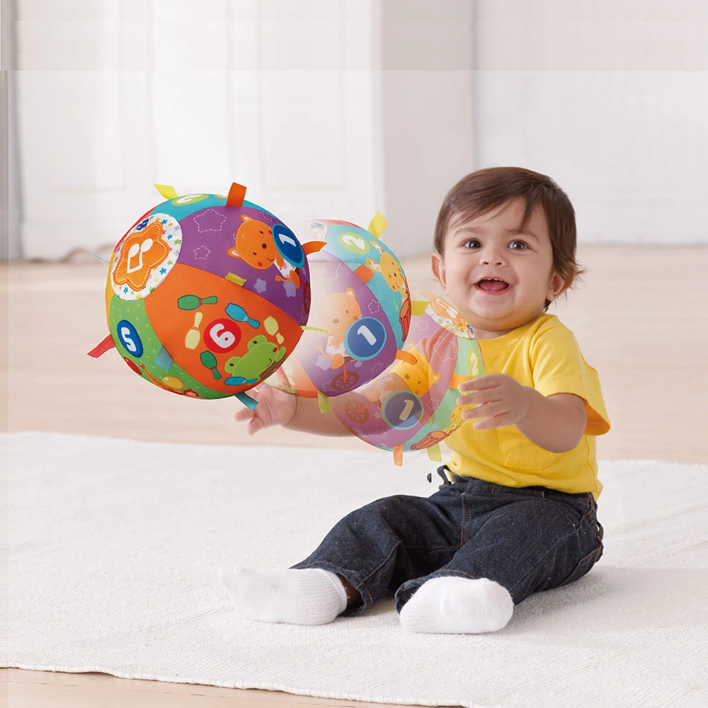 Un gros bouton orange en forme d’étoile sur le dessus de la balle pour déclencher des chansons, mélodies et apprentissages sur les animaux et les premiers chiffres.